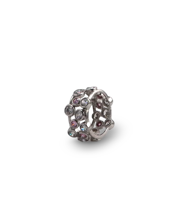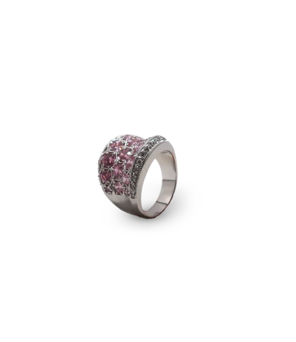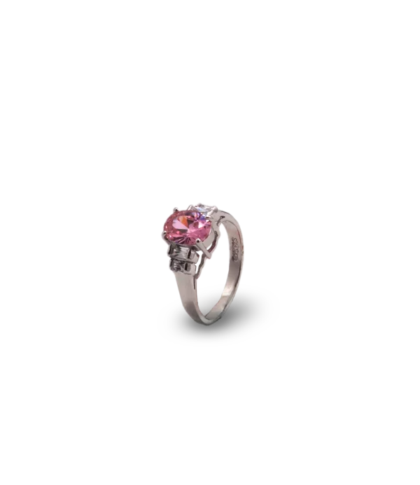 Silberring mit rosafarbenem Diamanten.